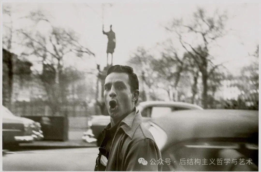 图6. “杰克 · 凯鲁亚克最后一次来看我,在曼哈顿下东城东五街704号的公寓里,他看着跟他父亲晚年一样,面色通红、身材臃肿,就像W. C. 菲尔兹因为对死亡惊惧而浑身颤栗。那是1964年秋天,这是他吃了我从米尔布鲁克带回来的DMT (二甲基色胺致幻药) 后,在药性作用下痛苦地扭曲着面容。” (照片及说明文字源于艾伦 · 金斯伯格,由美国国家美术馆/艾伦 · 金斯伯格遗产基金会提供)