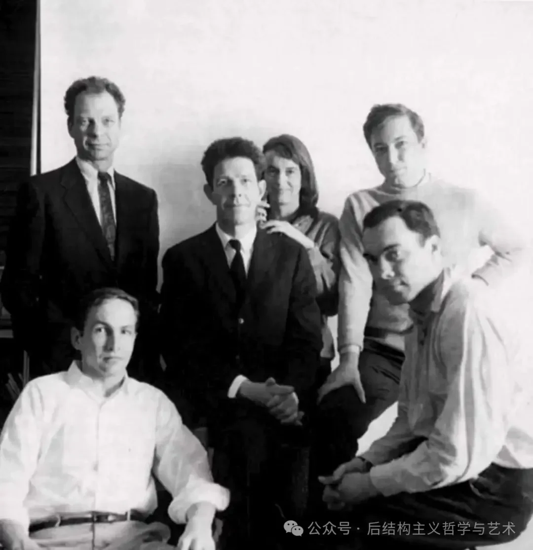 图 10. 从左到右:坎宁汉、劳森伯格、凯奇、琼斯、托姆布雷 1958 年合影。最近由科隆路德维希博物馆,与慕尼黑兰德霍斯特博物馆联合策划《五友》巡回展 (Fünf Freunde 2025. 8. 17 - 2026. 1. 11),声称再现了 1950 年代 “被忽视的美国后现代主义五大巨擎酷儿史”,揭示了被压抑、遮掩的 “酷儿爱” 把这五个艺术家捆绑在一起,并形成一个相互影响、亲密无间的艺术创造 “境界” (milieu)。劳森伯格曾这样说,“我们所有人都全身心投入工作”,“我们分享着每一个强烈的感受,而且我认为,我们为爱创造了奇迹。” 正如杜尚说过:“我认为同性恋群体对现代艺术的兴趣比异性恋更大。” 难怪凯奇要说:“我的所作所为,我都不愿归咎于禅。”